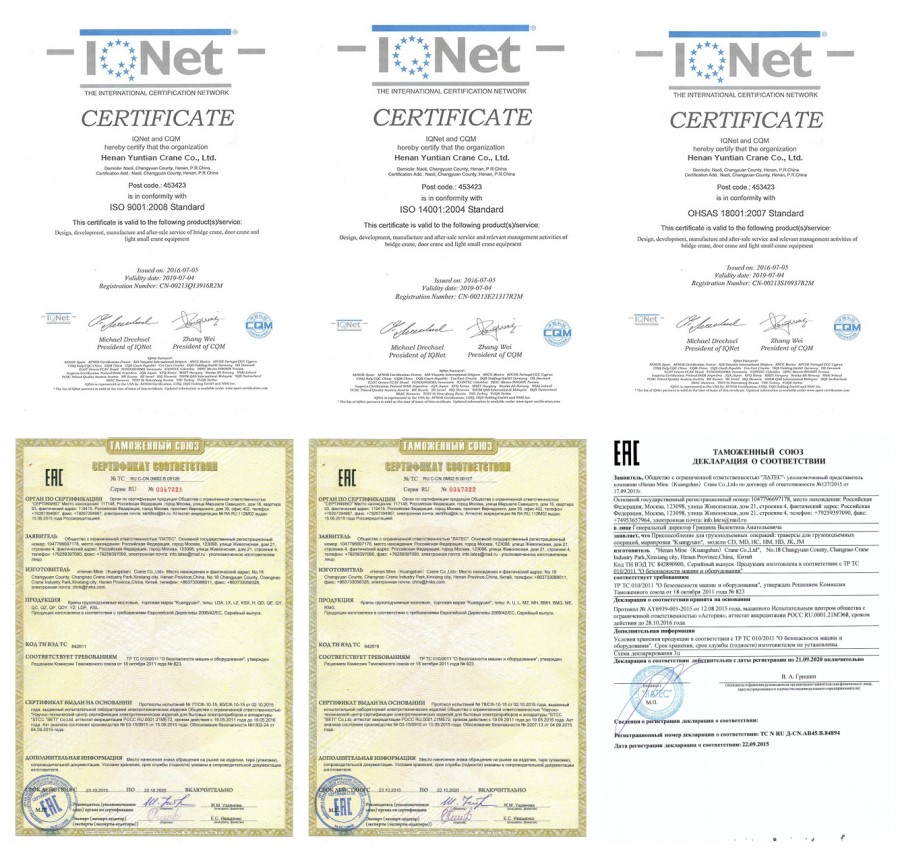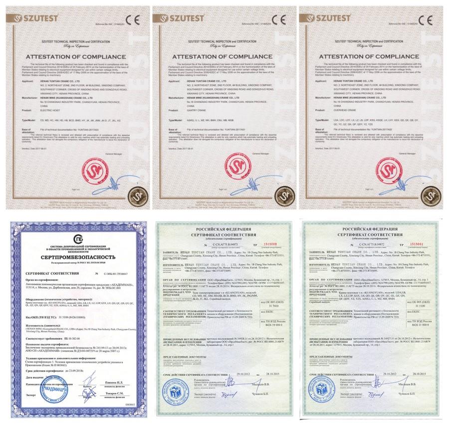 Vår kran har passerat CE, ISO, GOST, SGS, TUV, BV, och så vidare.